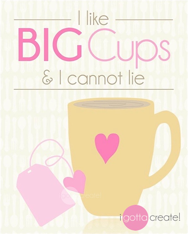 Design your own printable using my clip art Heart Mug and clip art Heart Teabags. Put your unique style and spin on it --the sky is the limit! You can use the words "Big Cups" in your theme or change it up and chose any quote that suits you. Plus, use whichever clip art color scheme appeals to you (3 to chose from)!
